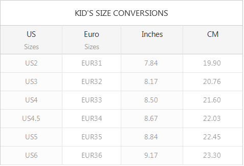Available in US, UK, and Euro sizes.